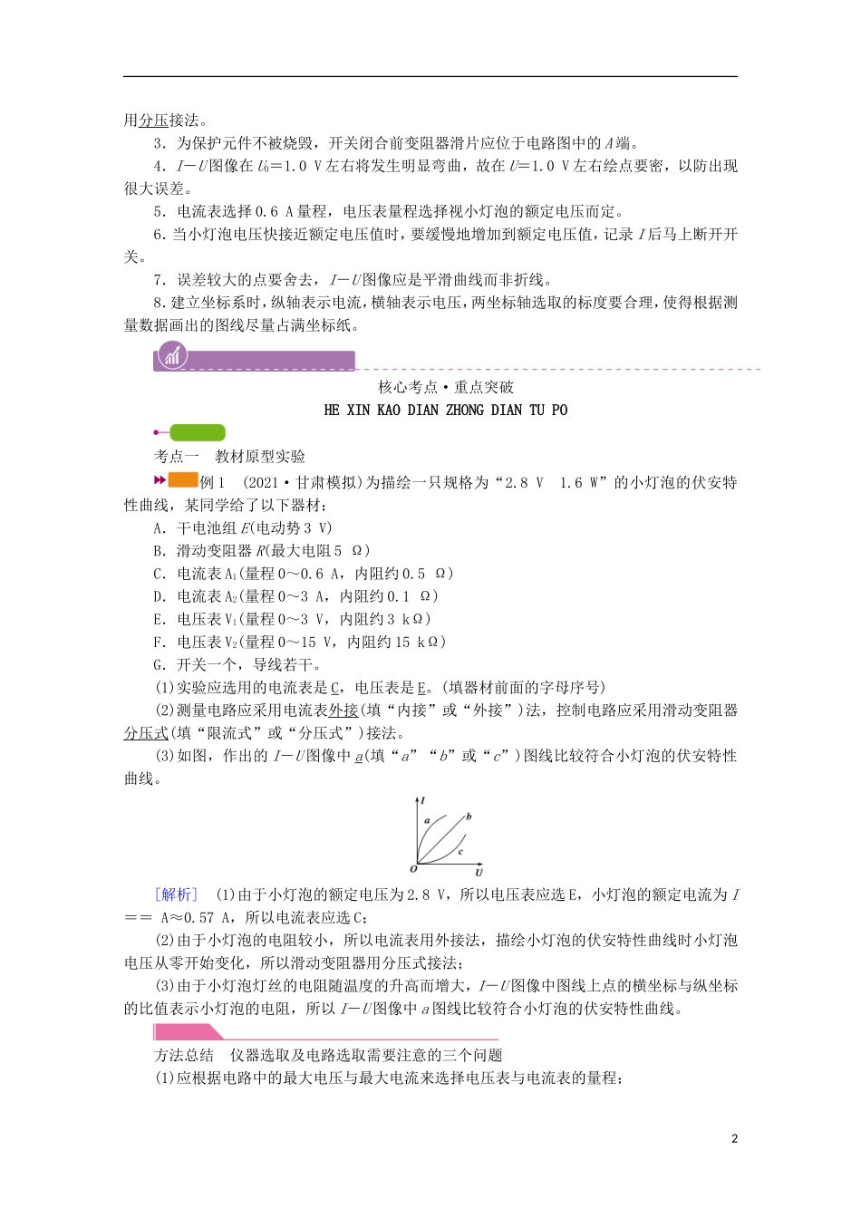 2022版高考物理一轮复习第八章恒定电流实验十一描绘小灯泡的伏安特性曲线学案新人教版.doc_第2页