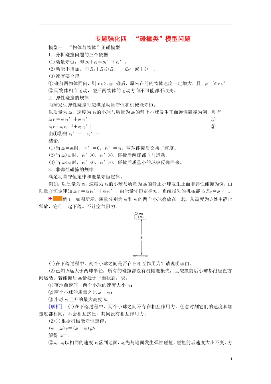 2022版高考物理一轮复习第六章动量和动量守恒定律专题强化四“碰撞类”模型问题学案新人教版.doc_第1页