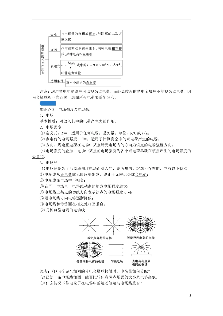 2022版高考物理一轮复习第七章静电场第1讲电场力的性质学案新人教版20210524285.doc_第2页