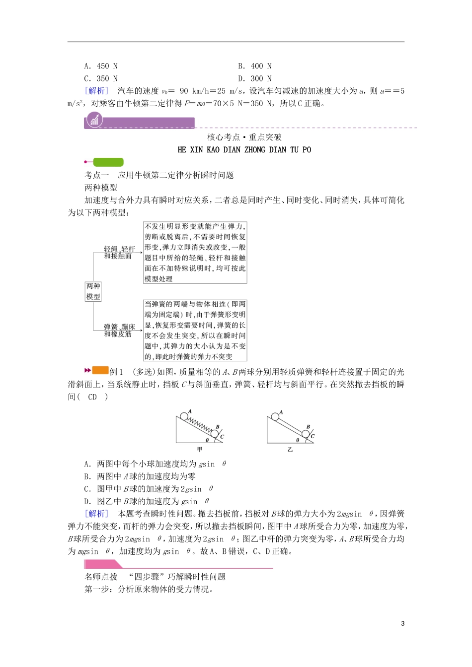 2022版高考物理一轮复习第三章牛顿运动定律第2讲牛顿第二定律的基本应用学案新人教版.doc_第3页