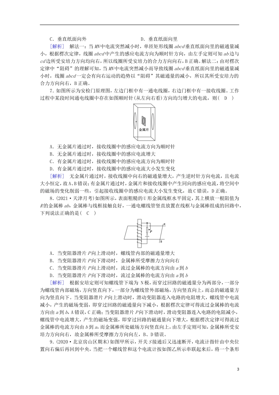 2022版高考物理一轮复习第十章电磁感应第1讲电磁感应现象楞次定律练习含解析新人教版.doc_第3页