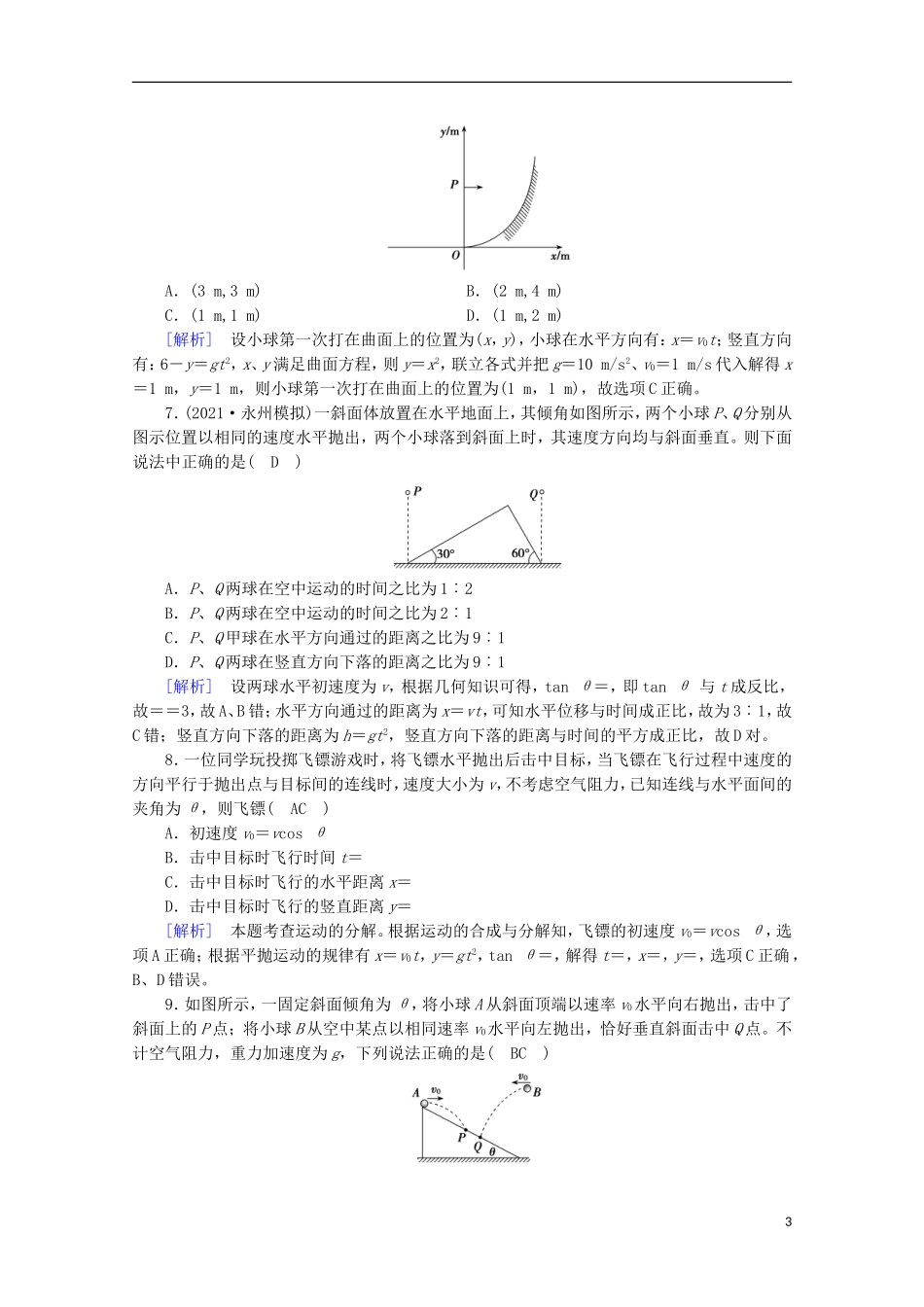 2022版高考物理一轮复习第四章曲线运动万有引力与航天第2讲抛体运动练习含解析新人教版.doc_第3页