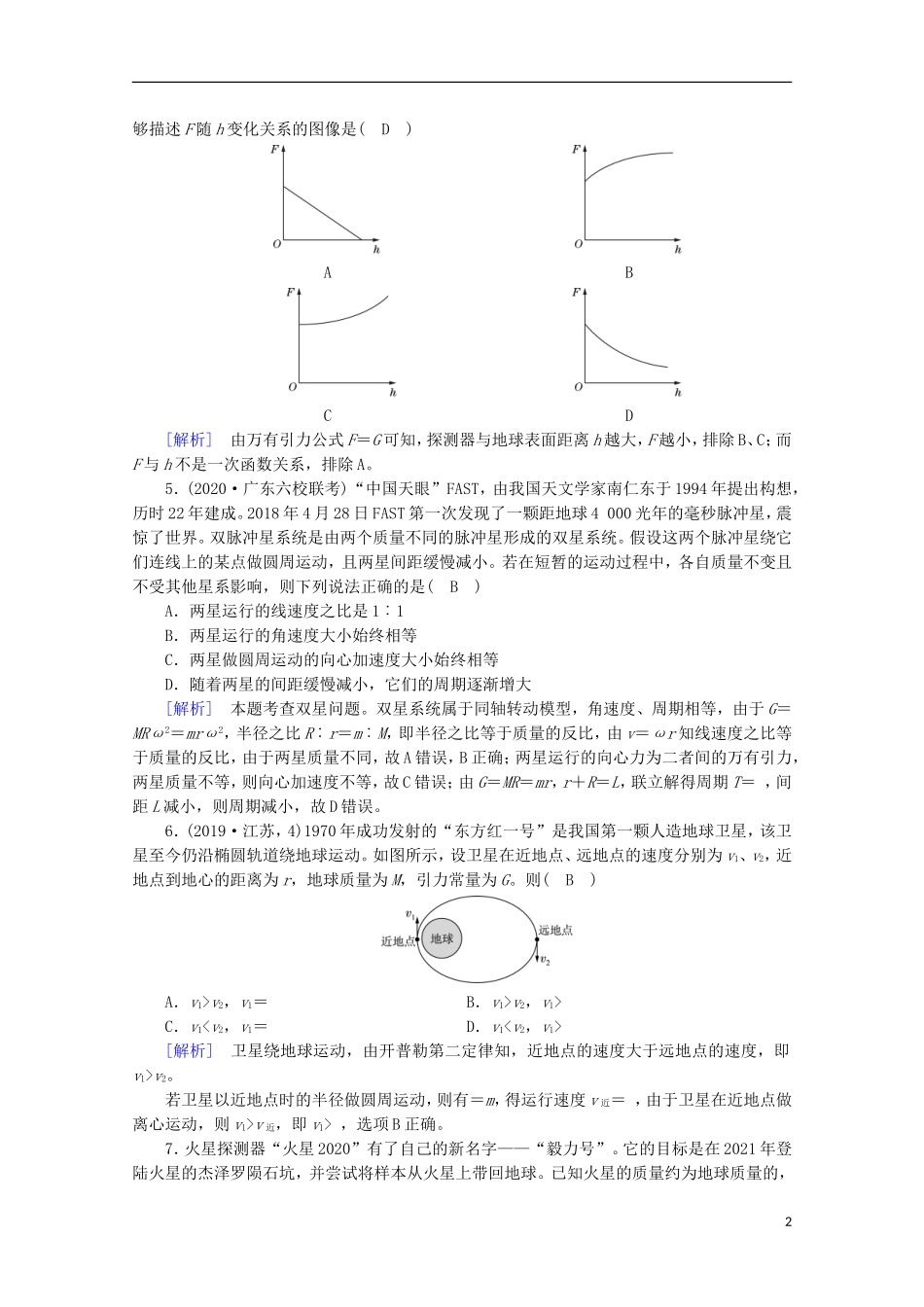 2022版高考物理一轮复习第四章曲线运动万有引力与航天第4讲万有引力定律及其应用练习含解析新人教版.doc_第2页