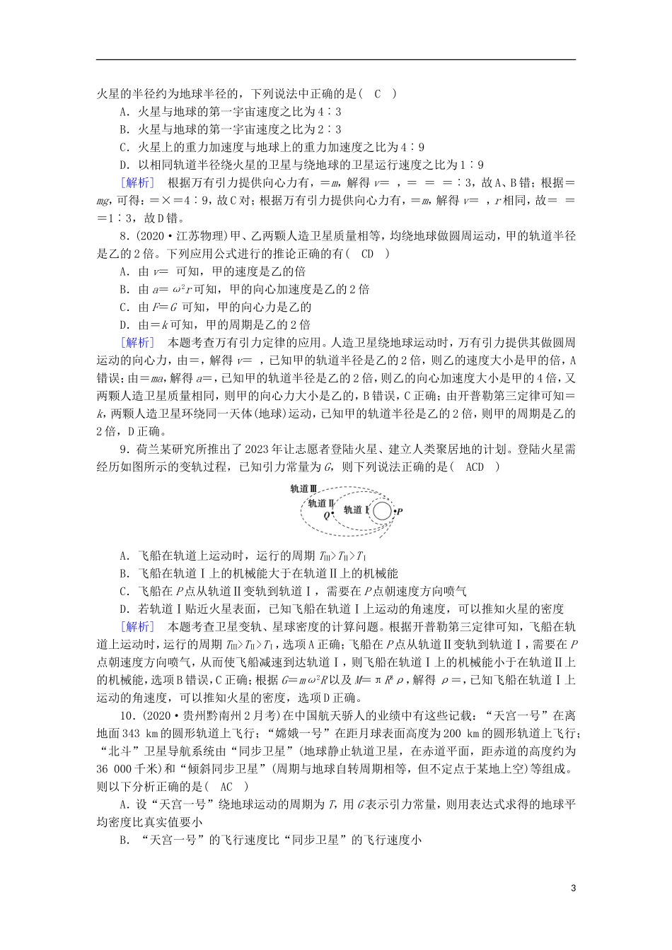 2022版高考物理一轮复习第四章曲线运动万有引力与航天第4讲万有引力定律及其应用练习含解析新人教版.doc_第3页