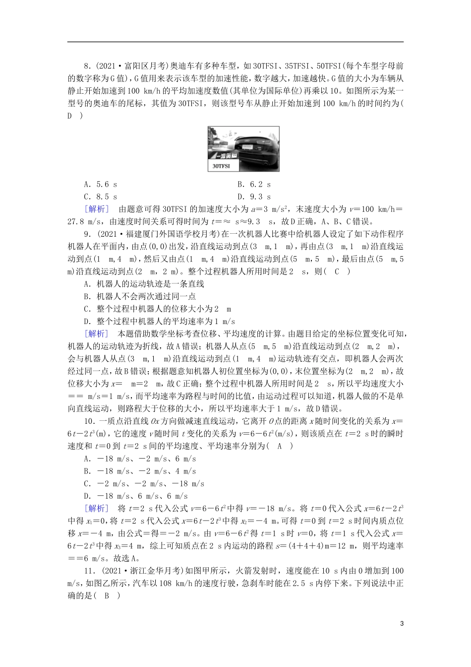 2022版高考物理一轮复习第一章运动的描述匀变速直线运动第1讲描述运动的基本概念练习含解析新人教版.doc_第3页