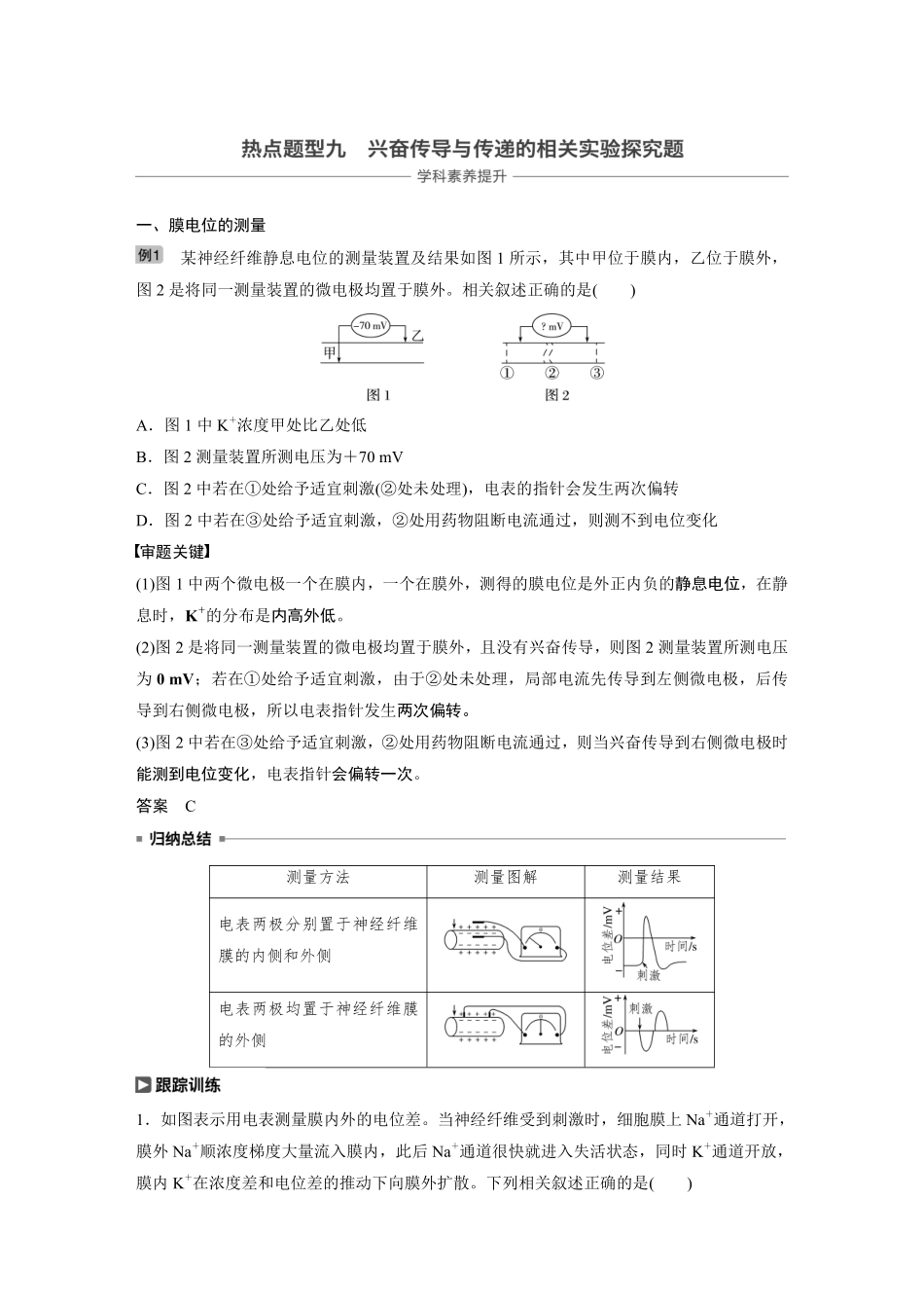 高考生物一轮复习讲义 第8单元 热点题型九  兴奋传导的相关实验探究.pdf_第1页
