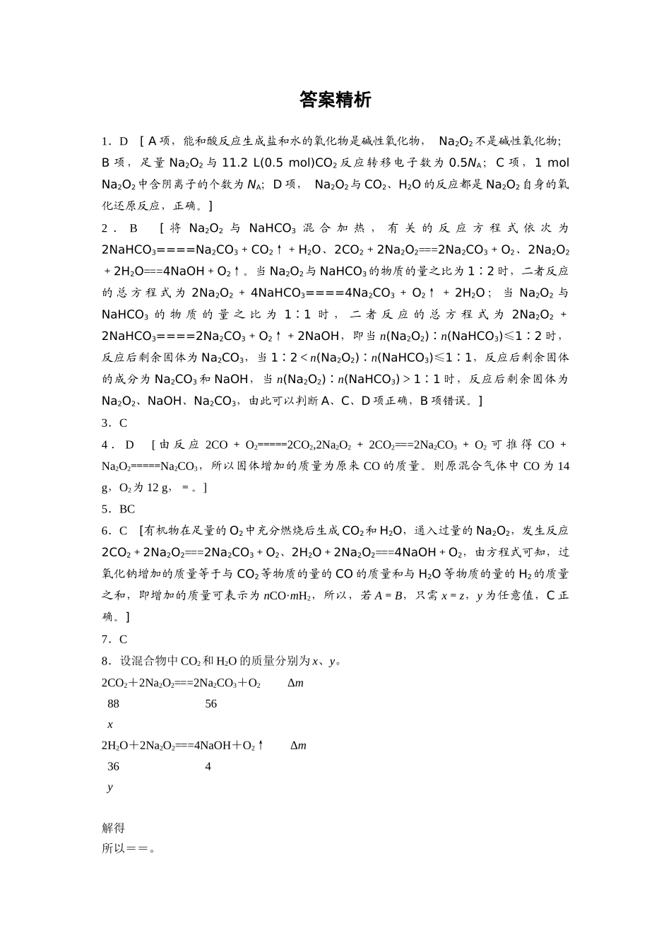 高三化学每天练习20分钟——“四角度”认识过氧化钠有关反应(有答案和详细解析).docx_第2页