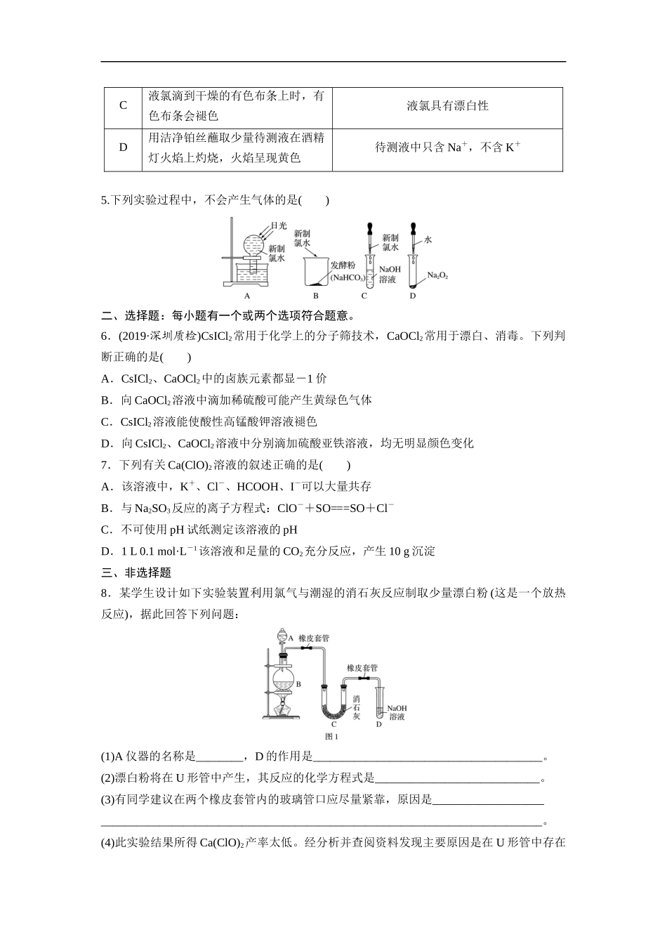 高三化学每天练习20分钟——氯及其化合物的制备与性质探究.docx_第2页