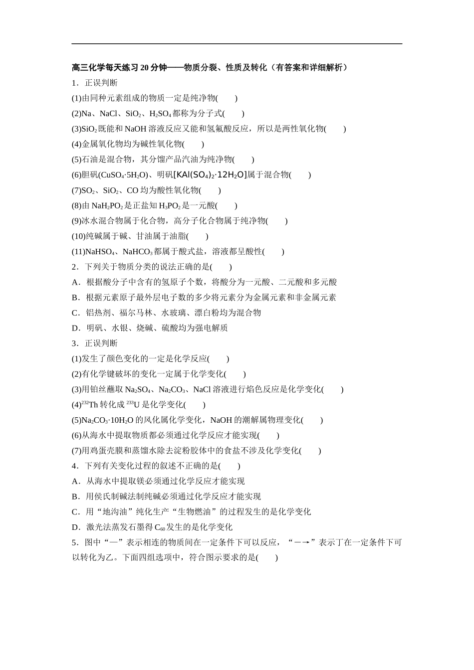 高三化学每天练习20分钟——物质分裂、性质及转化(有答案和详细解析).docx_第1页