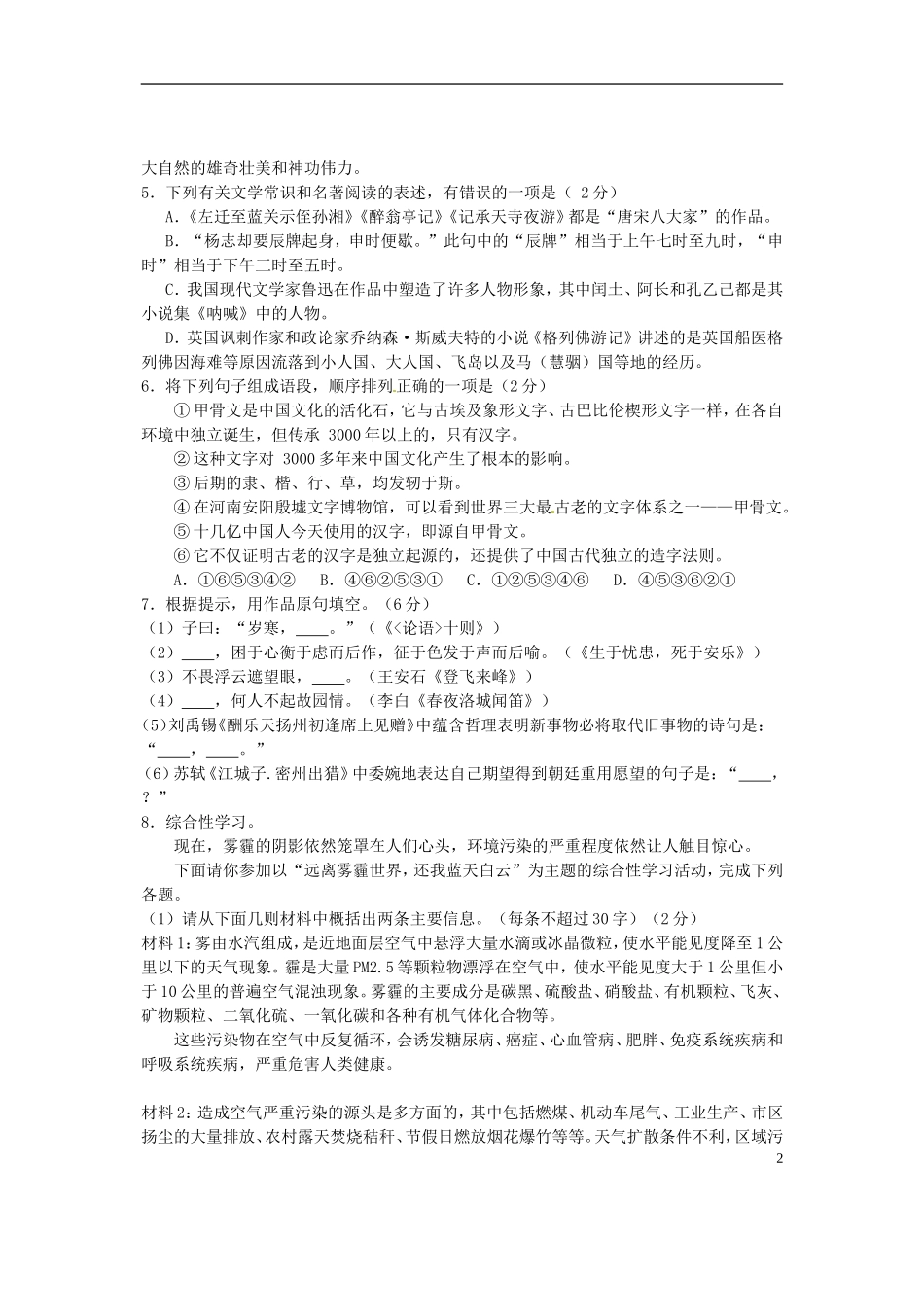 湖北省鄂州市2015年中考语文真题试题(含答案).doc_第2页