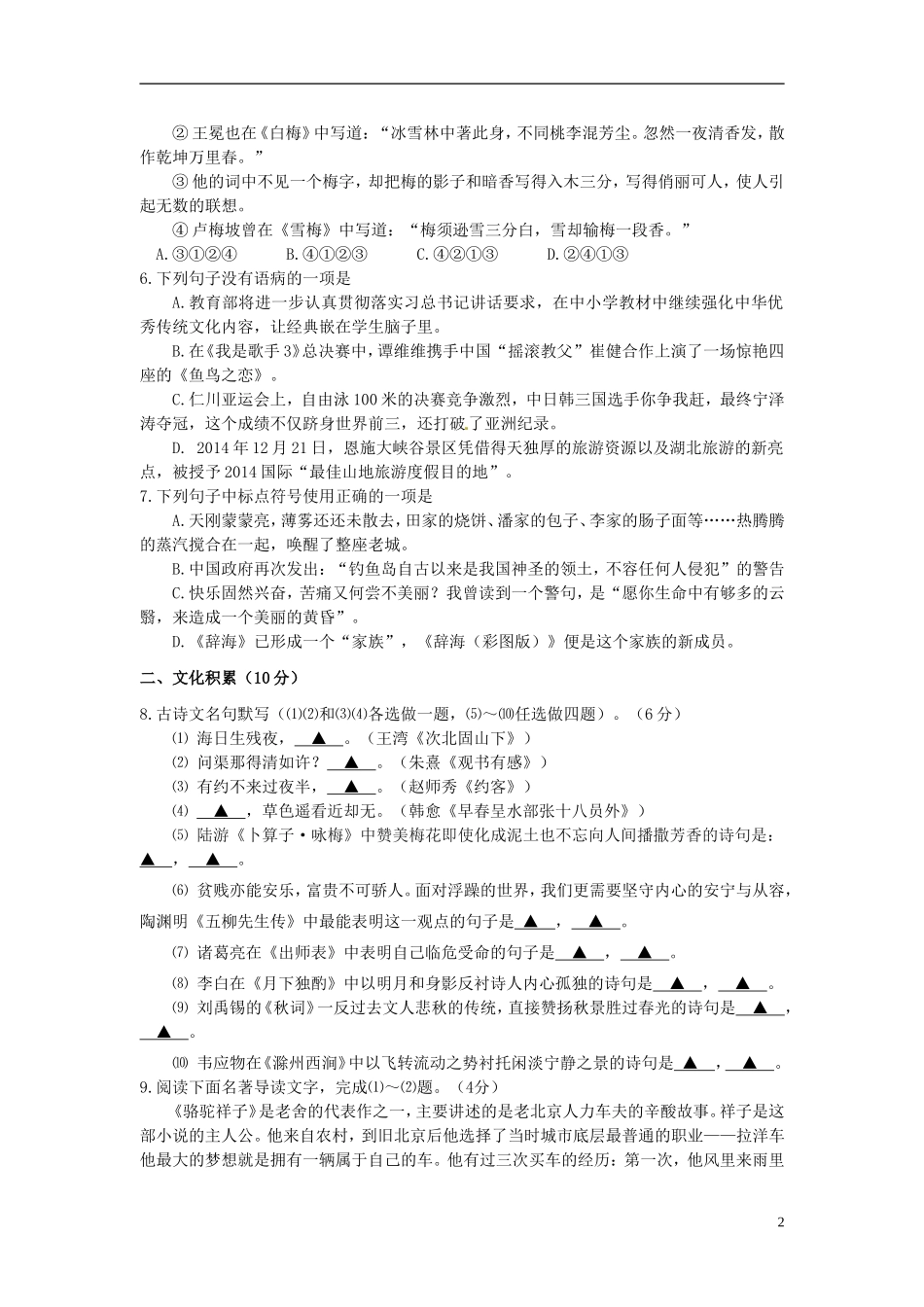 湖北省恩施州2015年中考语文真题试题(含答案).doc_第2页
