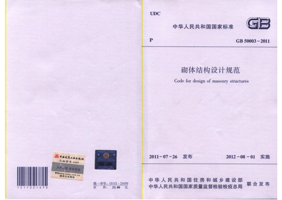 《砌体结构设计规范》GB5003-2011.pdf_第1页