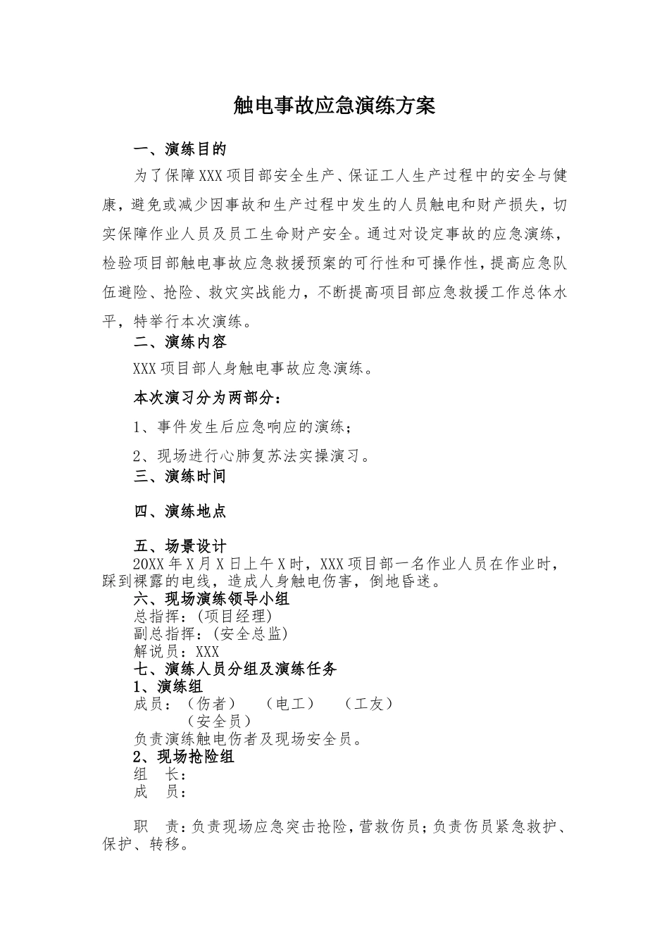【新增】触电事故应急救援演练方案(含脚本8页).doc