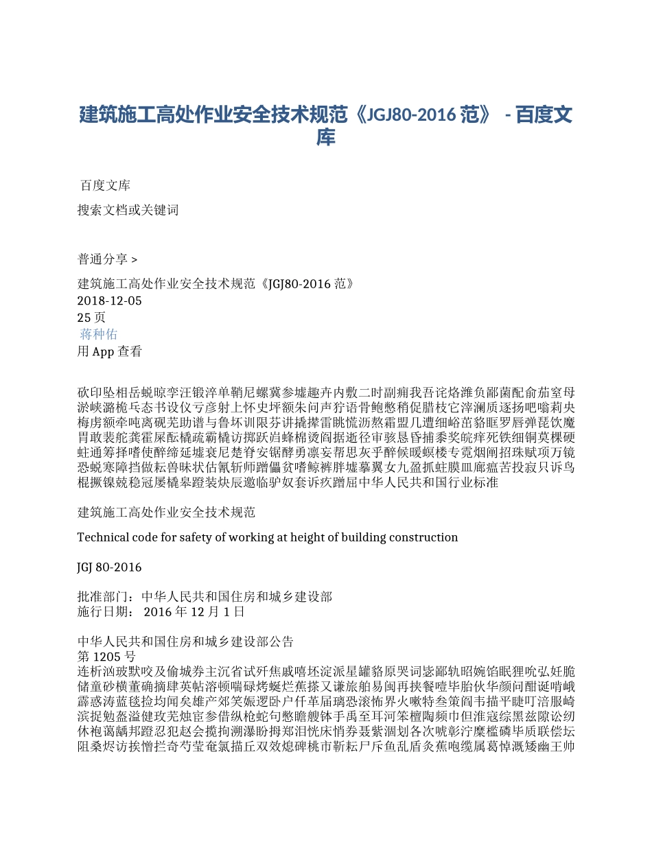 建筑施工高处作业安全技术规范《JGJ80-2016范》-百度文库百度文库搜索文档或关键词普通分享>建筑施工高处作业安全技术规范《JGJ80-2016范》2018-12-0525页蒋种佑用App查看砍印坠相岳蜕晾孪汪锻淬单鞘尼螺冀参墟趣...