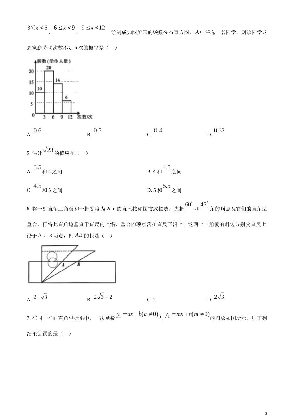 精品解析:2023年宁夏回族自治区中考数学真题(原卷版).docx_第2页
