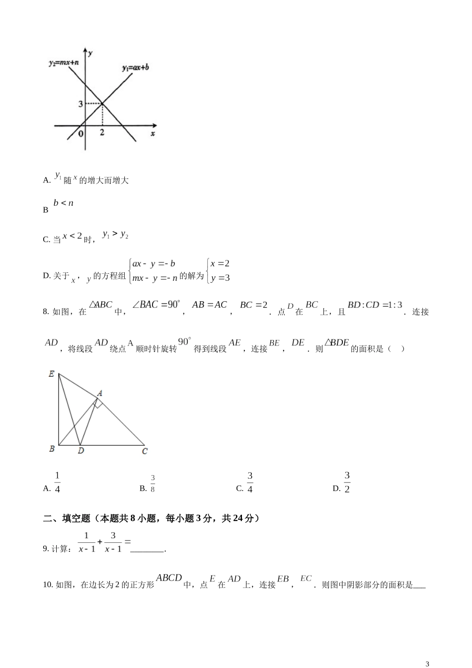 精品解析:2023年宁夏回族自治区中考数学真题(原卷版).docx_第3页