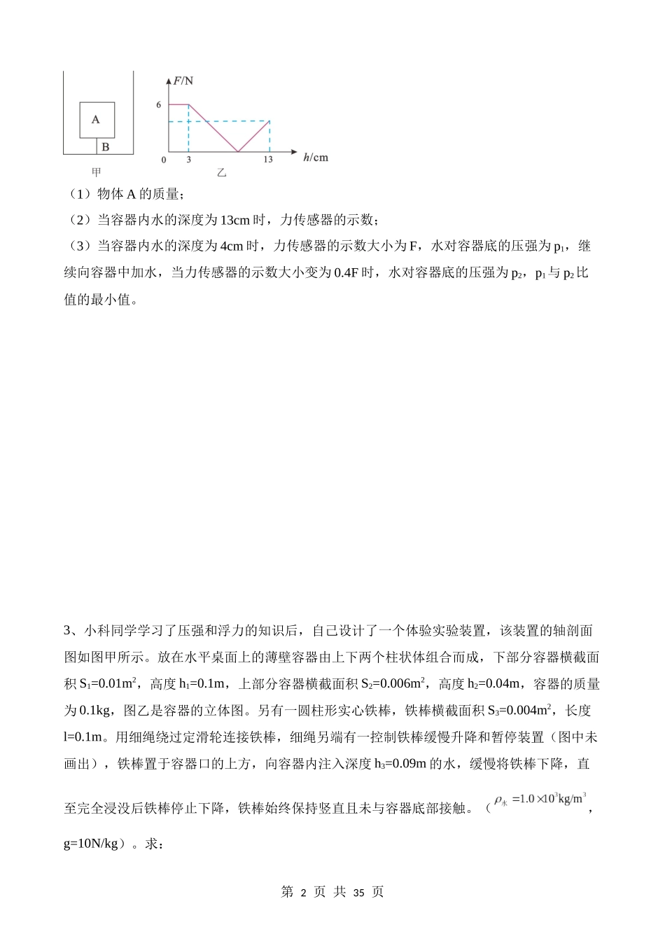 【八年级上册华师大科学】3.7 拓展3:浮力、压强五大题型计算 同步练习.docx_第2页