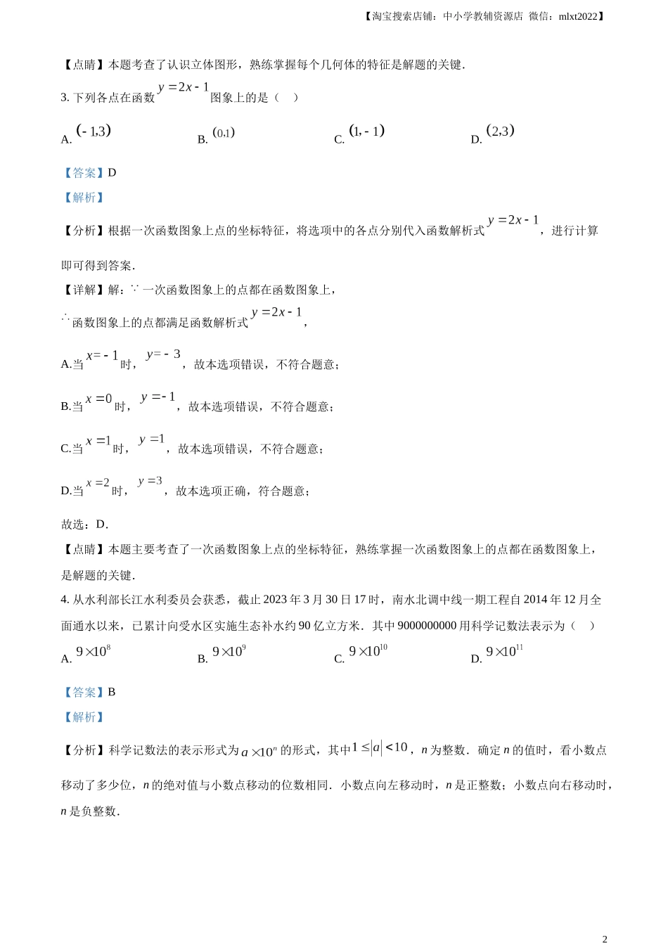 精品解析:2023年四川省乐山市中考数学真题 (解析版).docx_第2页