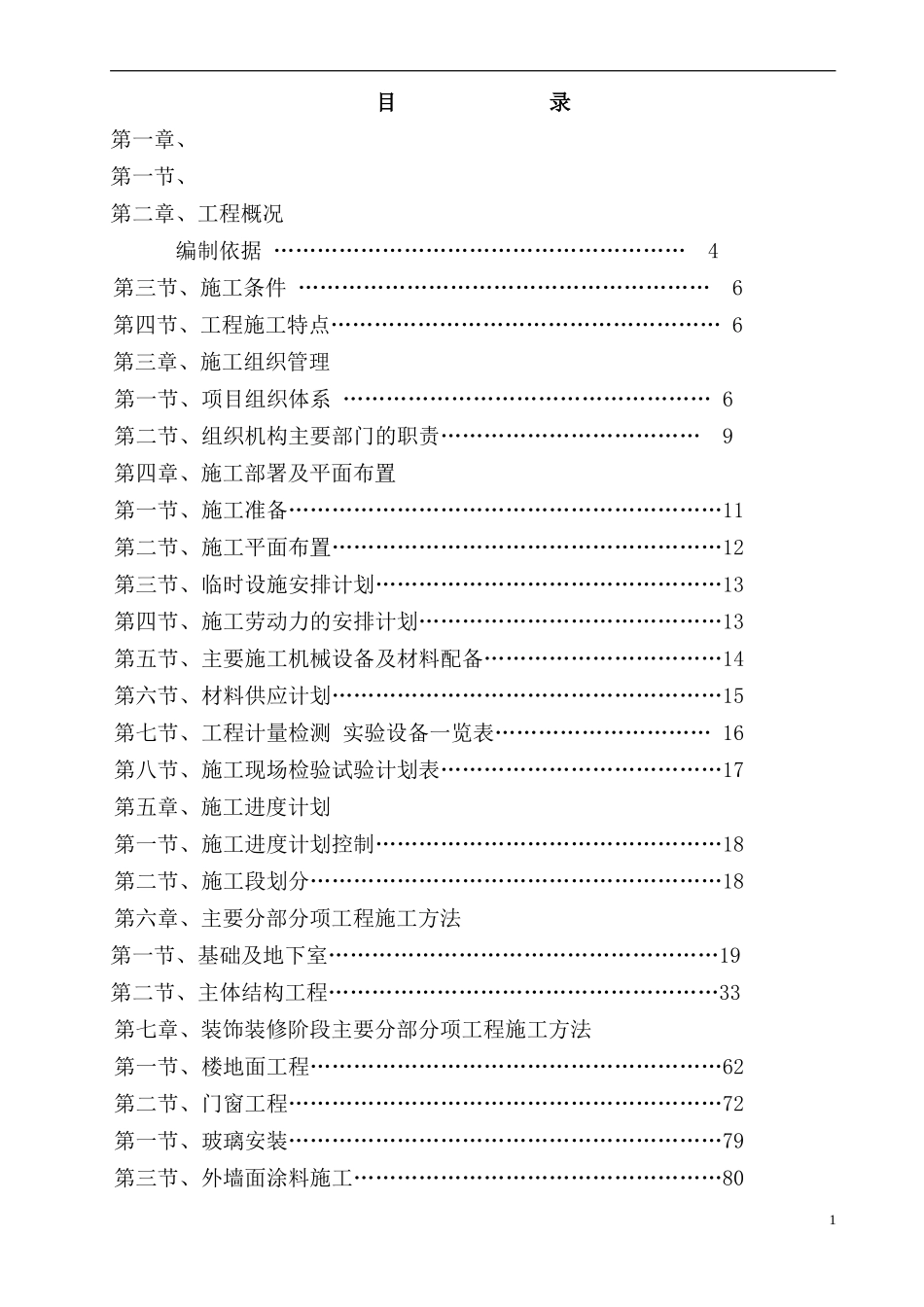 目录第一章、第一节、第二章、工程概况编制依据…………………………………………………4第三节、施工条件…………………………………………………6第四节、工程施工特点………………………………………………6第...