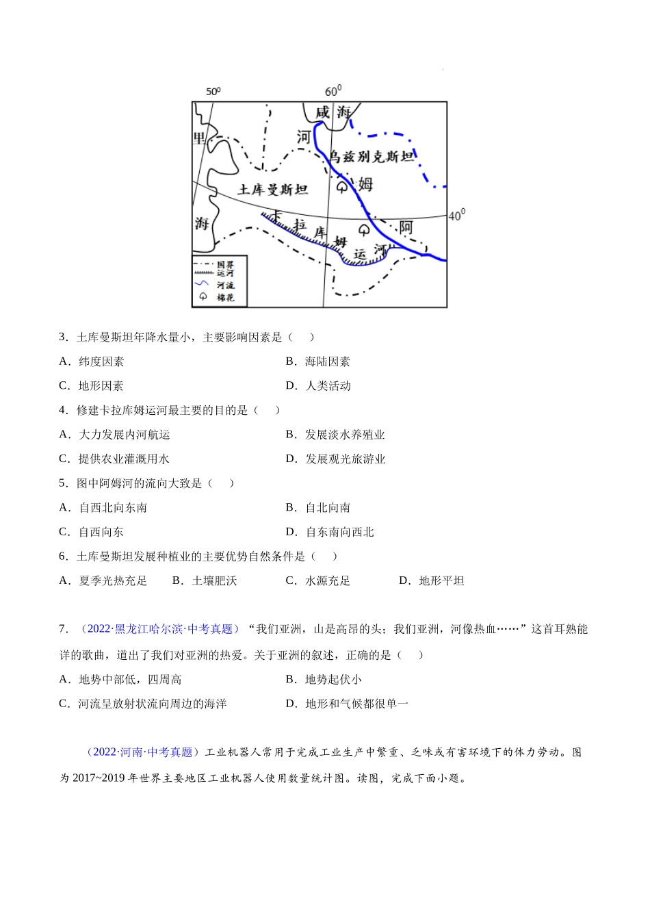07 亚洲-三年(2020-2022)中考地理真题分项汇编(全国通用)(原卷版).docx