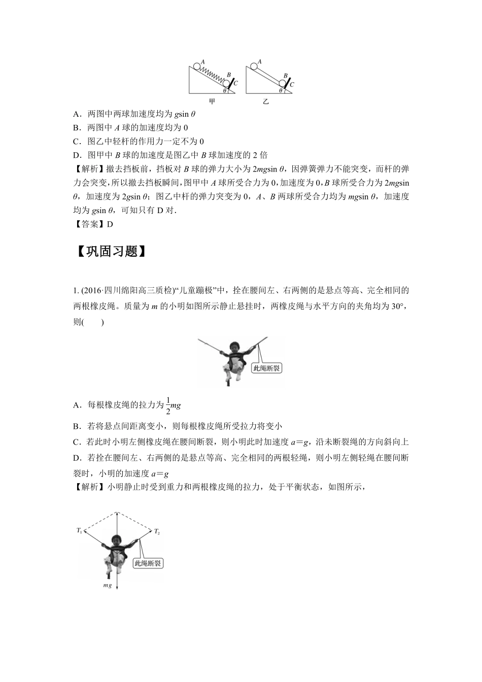 高中物理专题微专题08  牛顿运动定律应用之瞬时性加速度问题.pdf_第2页
