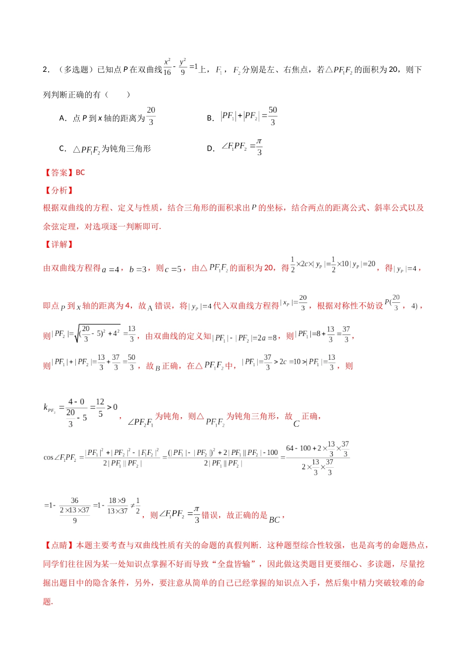 专题02双曲线的焦点三角形问题(解析版)-高考数学圆锥曲线部分必会十大基本题型.docx_第2页