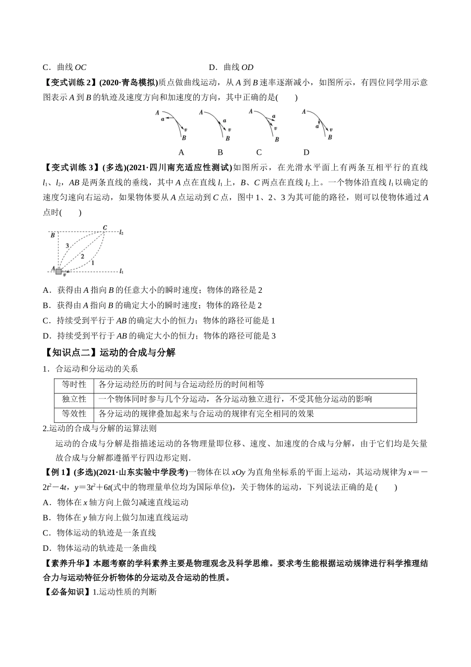 专题4.1 曲线运动 运动的合成与分解【讲】学生版-高考物理一轮复习讲义(新高考).docx_第2页