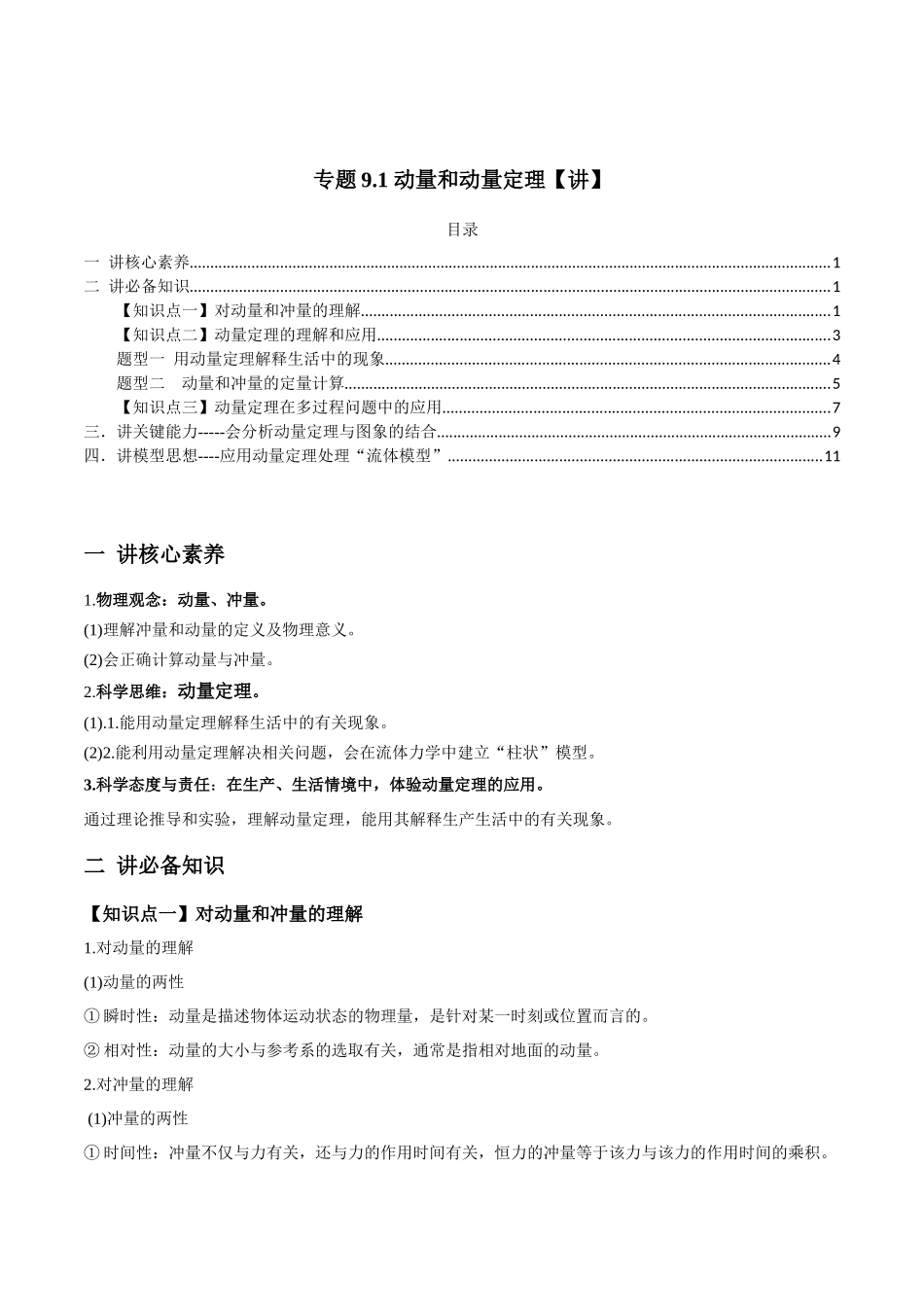 专题9.1动量和动量定理【讲】目录一讲核心素养.............................................................................................................................................................