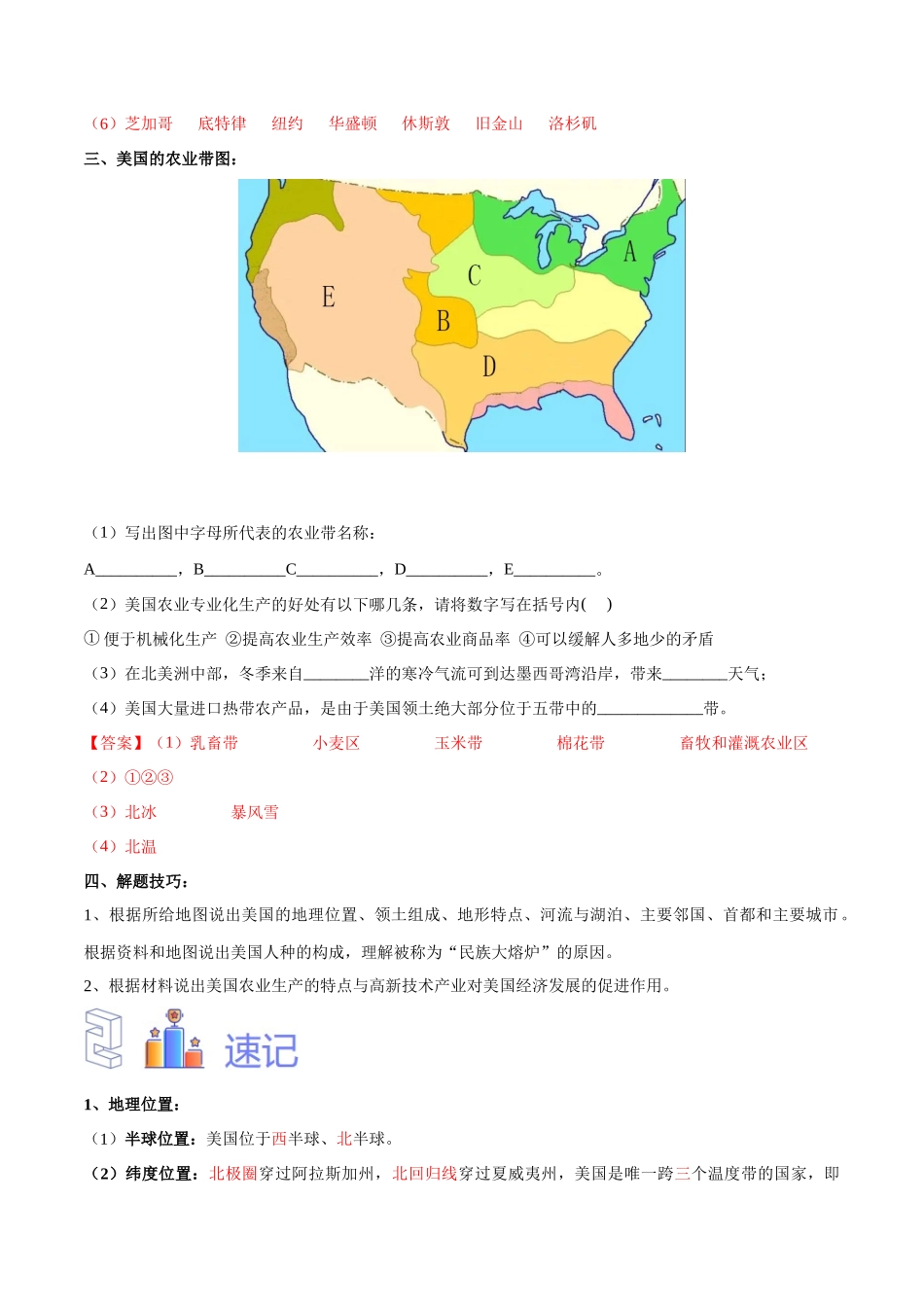 专题13 北美洲及美国-备战2024年中考地理识图速记手册与变式演练(全国通用)(解析版).docx_第2页