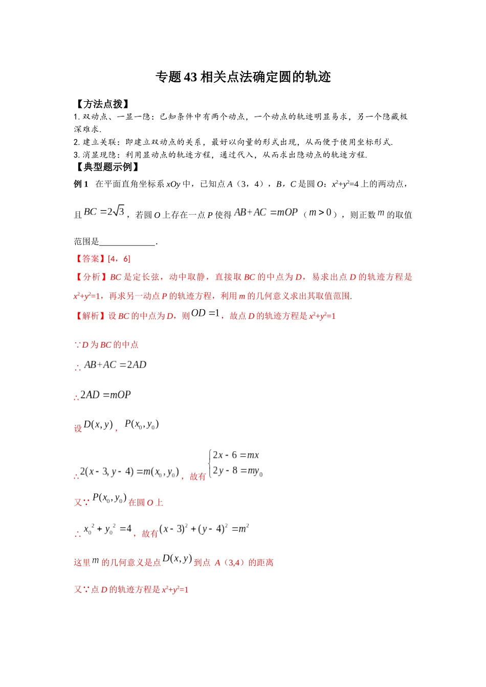 专题43 相关点法确定圆的轨迹-妙解高考数学填选压轴题.docx_第1页