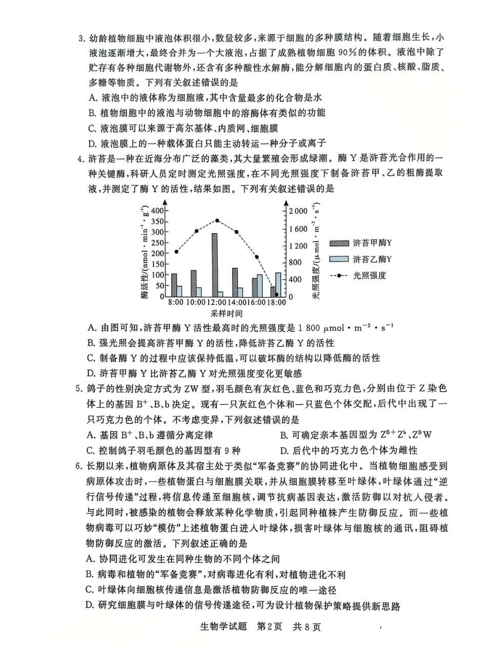 2025届全国T8(八省八校)高三12月联合测评生物试卷.pdf_第2页