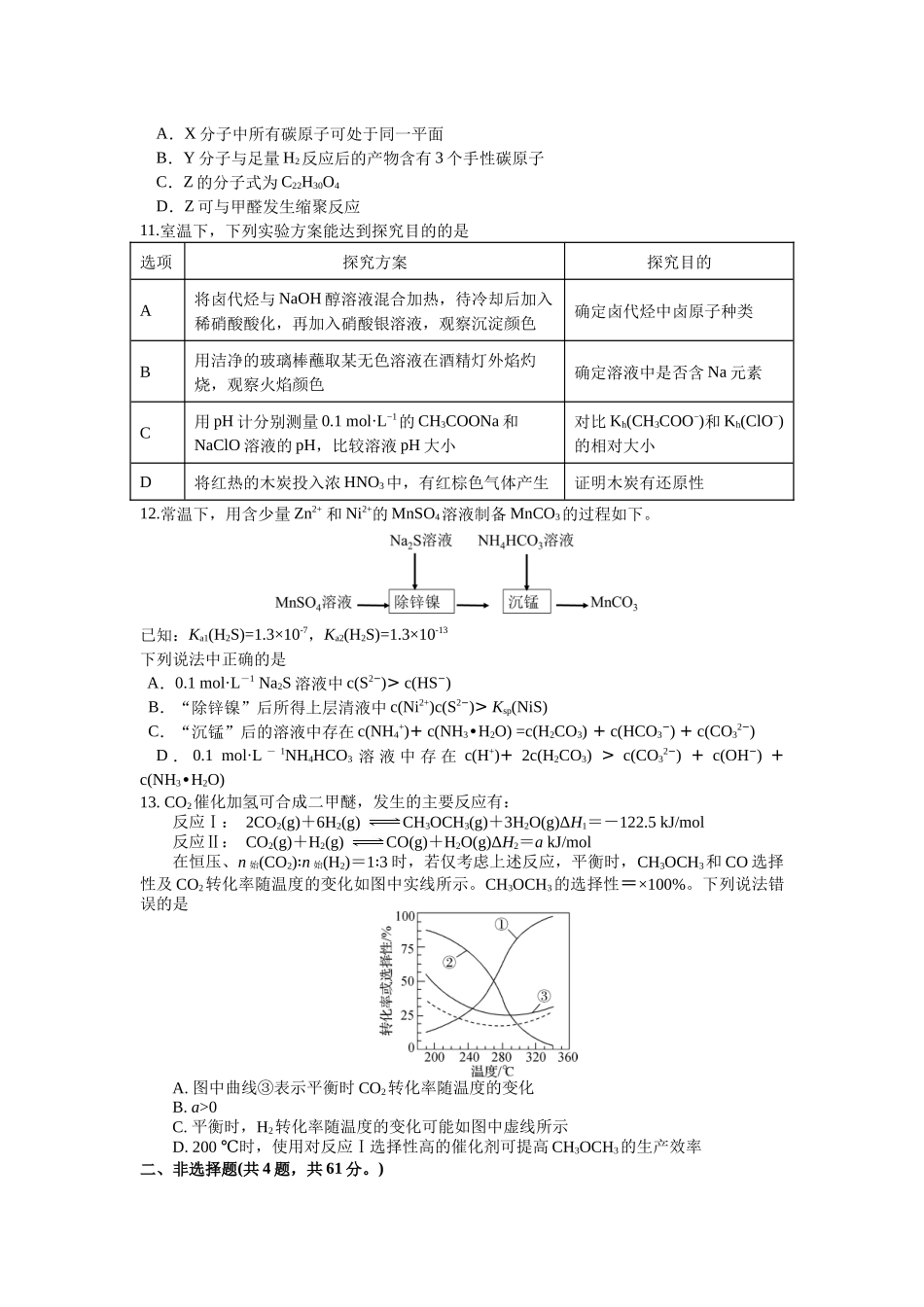 澄宜六校阶段性联合测试试题高三化学2024.12一、选择题(共13题,每题3分,共39分。每题只有一个选项最符合题意。)1.习总书记强调:积极培育和发展新质生产力。下列与科技成就相关的描述正确的是A.“朱雀二号”遥...