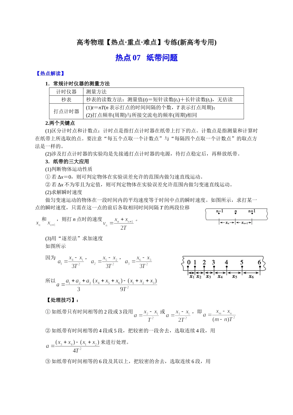热点07   纸带问题(教师版含解析)-高考物理专练(新高考专用).doc_第1页