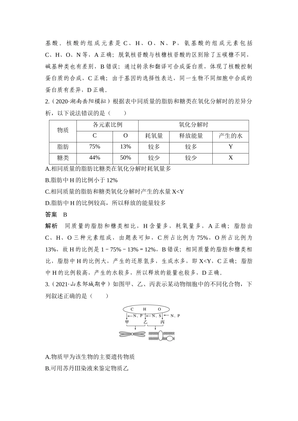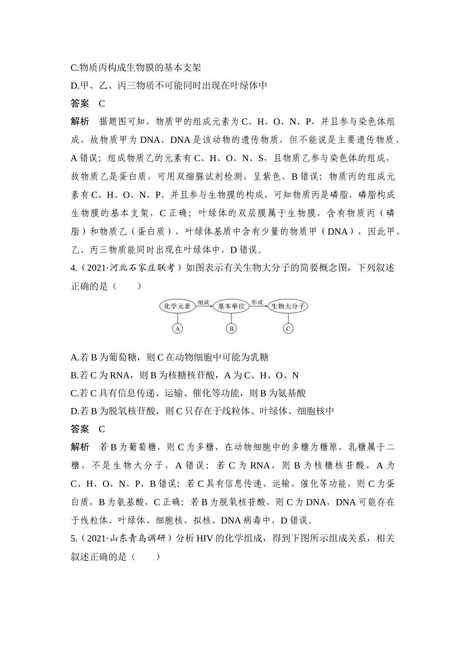 热点微练1 细胞中有机物之间的联系-高考生物热点微练.docx_第3页