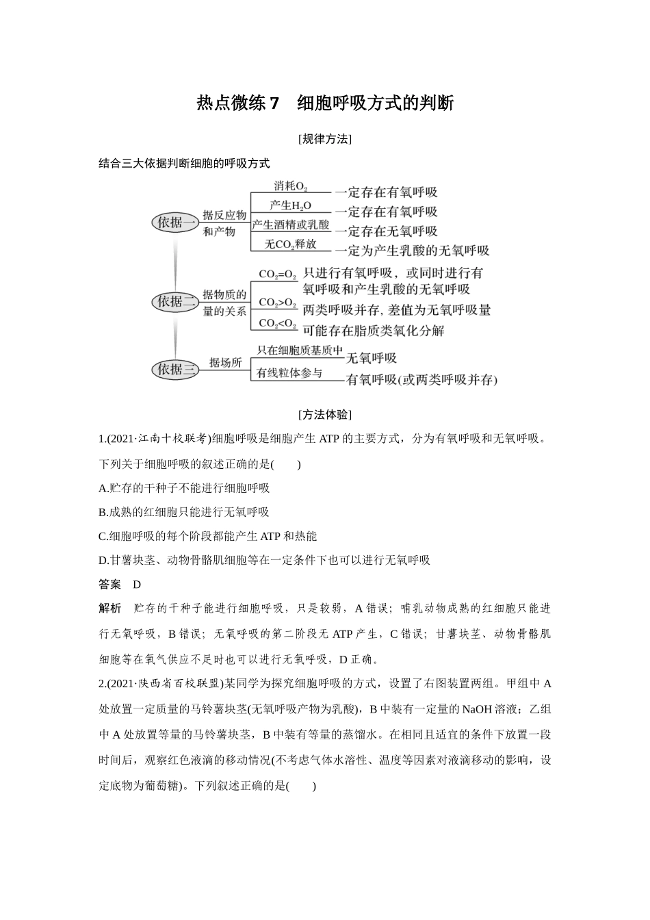 热点微练7 细胞呼吸方式的判断-高考生物热点微练(新高考版).docx_第1页