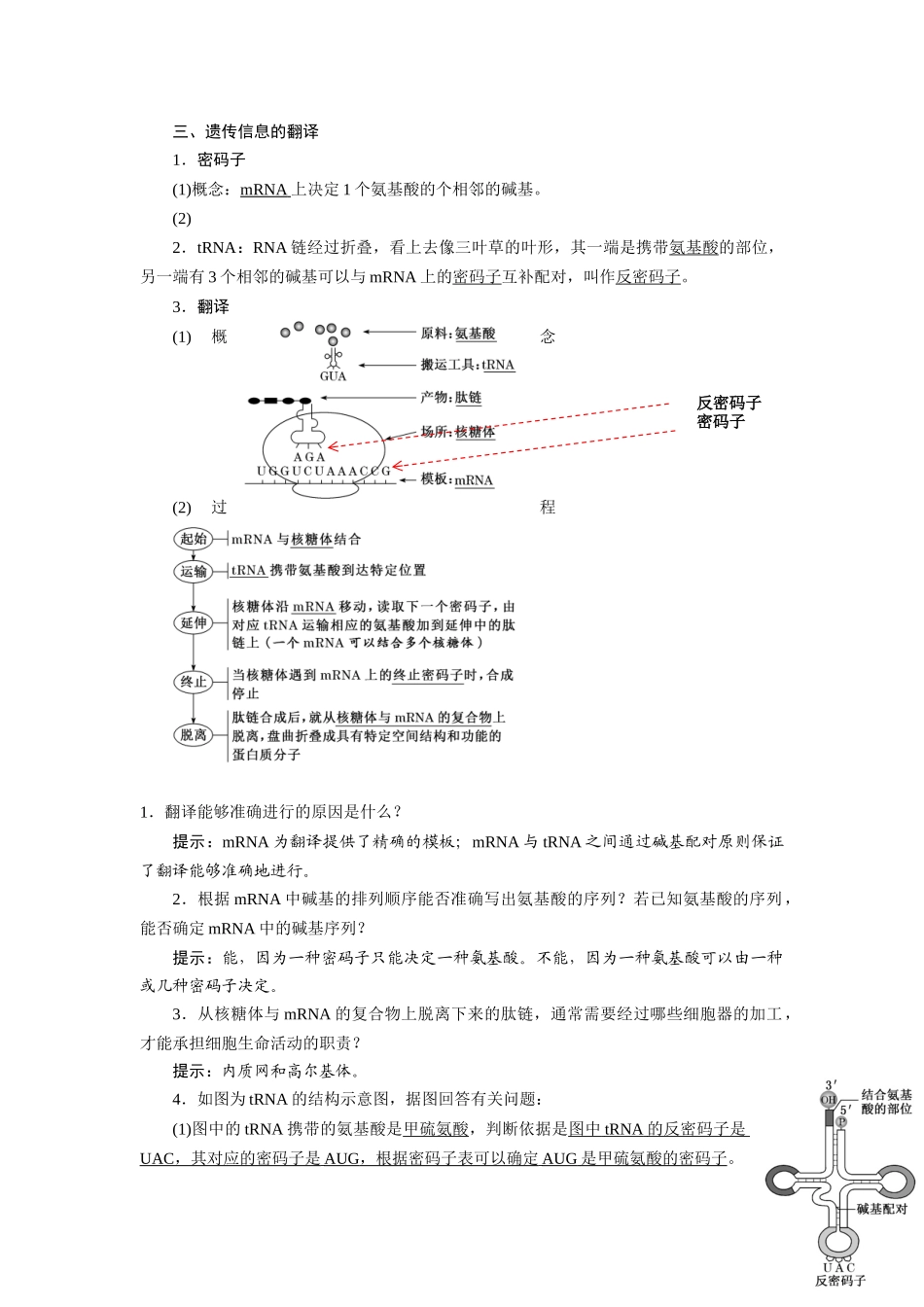 人教版 高中生物必修二 《遗传与进化》 -第4章 基因的表达-知识点总结.docx_第3页