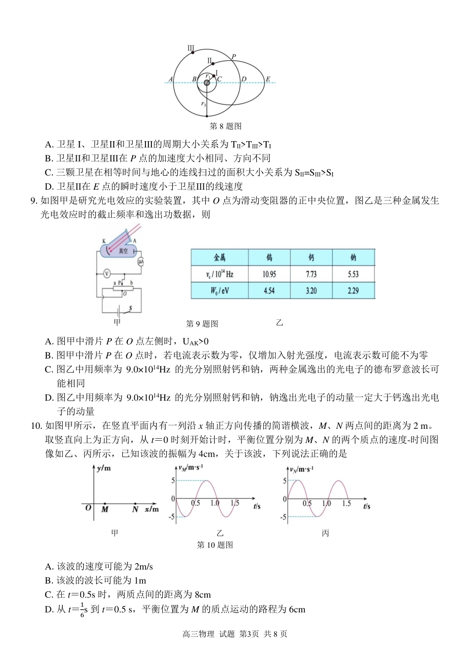 浙江省精诚联盟2024-2025学年高三上学期12月适应性联考(全科)物理试卷含答案.pdf_第3页