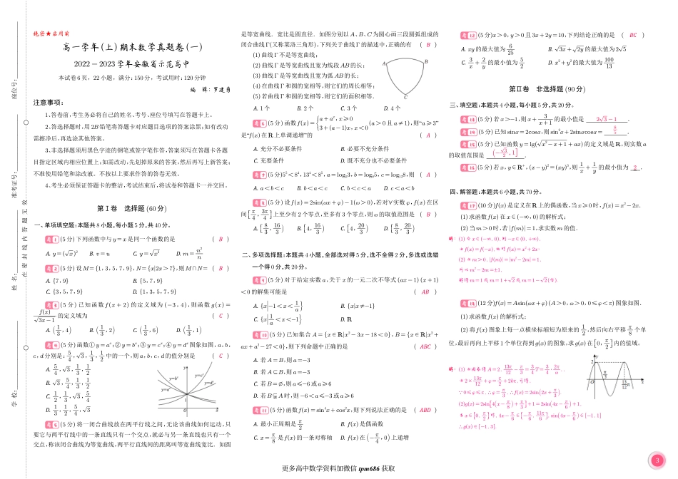 选择大于努力知行成就未来高一期末真题卷(一)【2022安徽省示范高中】...