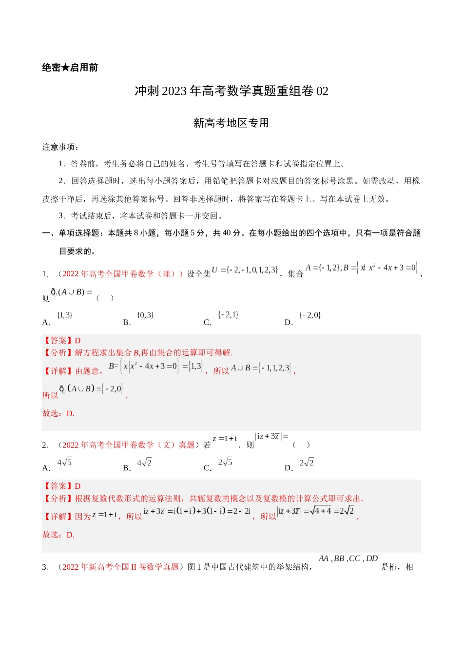 重组卷02-冲刺2023年高考数学真题重组卷(解析版).docx_第1页