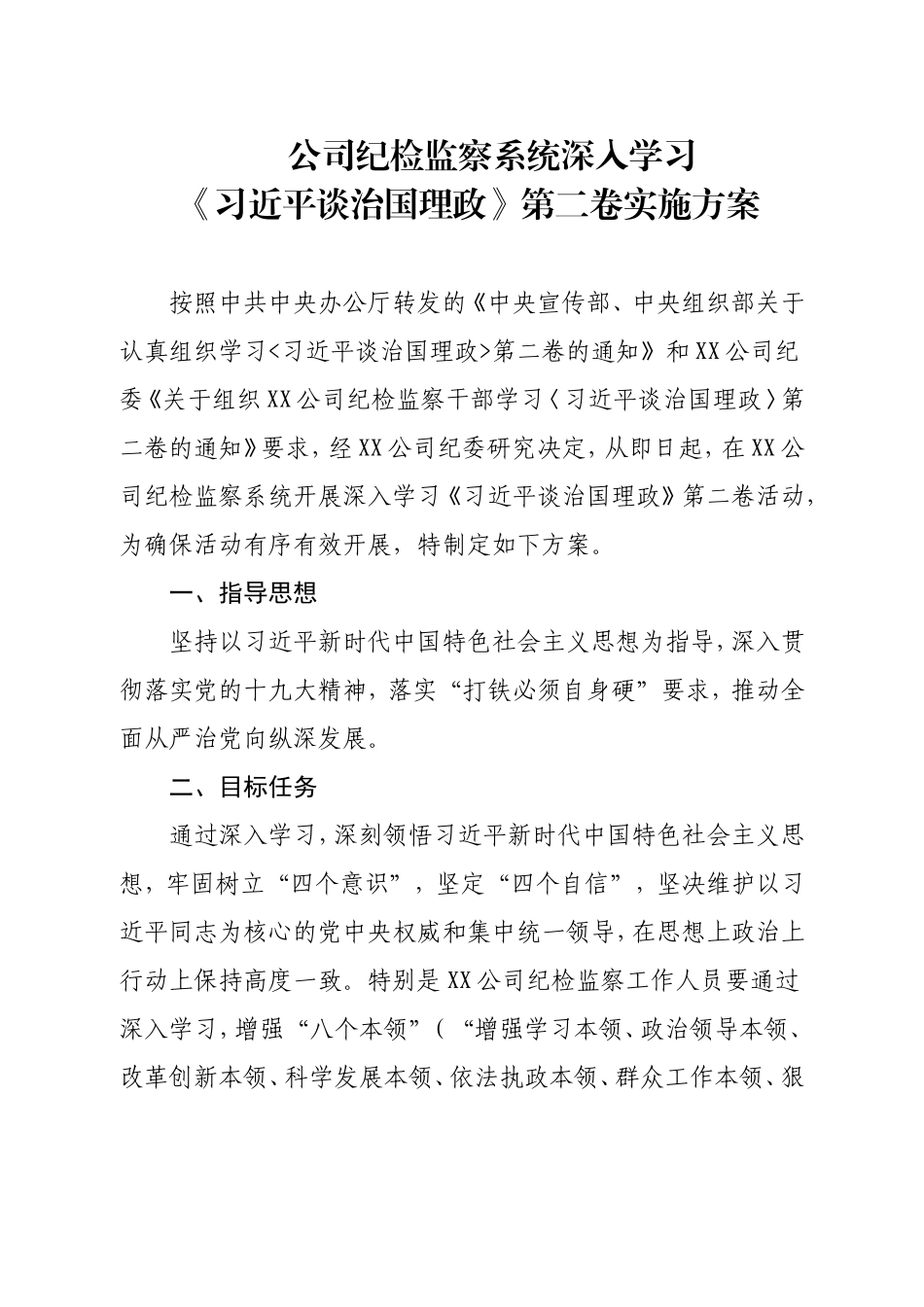 关于印发xx公司纪检监察系统深入学习习近平谈治国理政第二卷实施方案的通知.doc_第2页