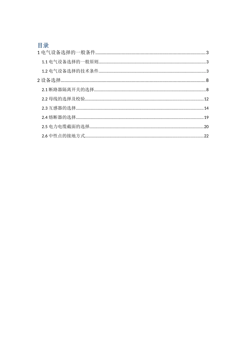变电所电气设备选型书目录1电气设备选择的一般条件.......................................................................................31.1电气设备选择的一般原则........................................