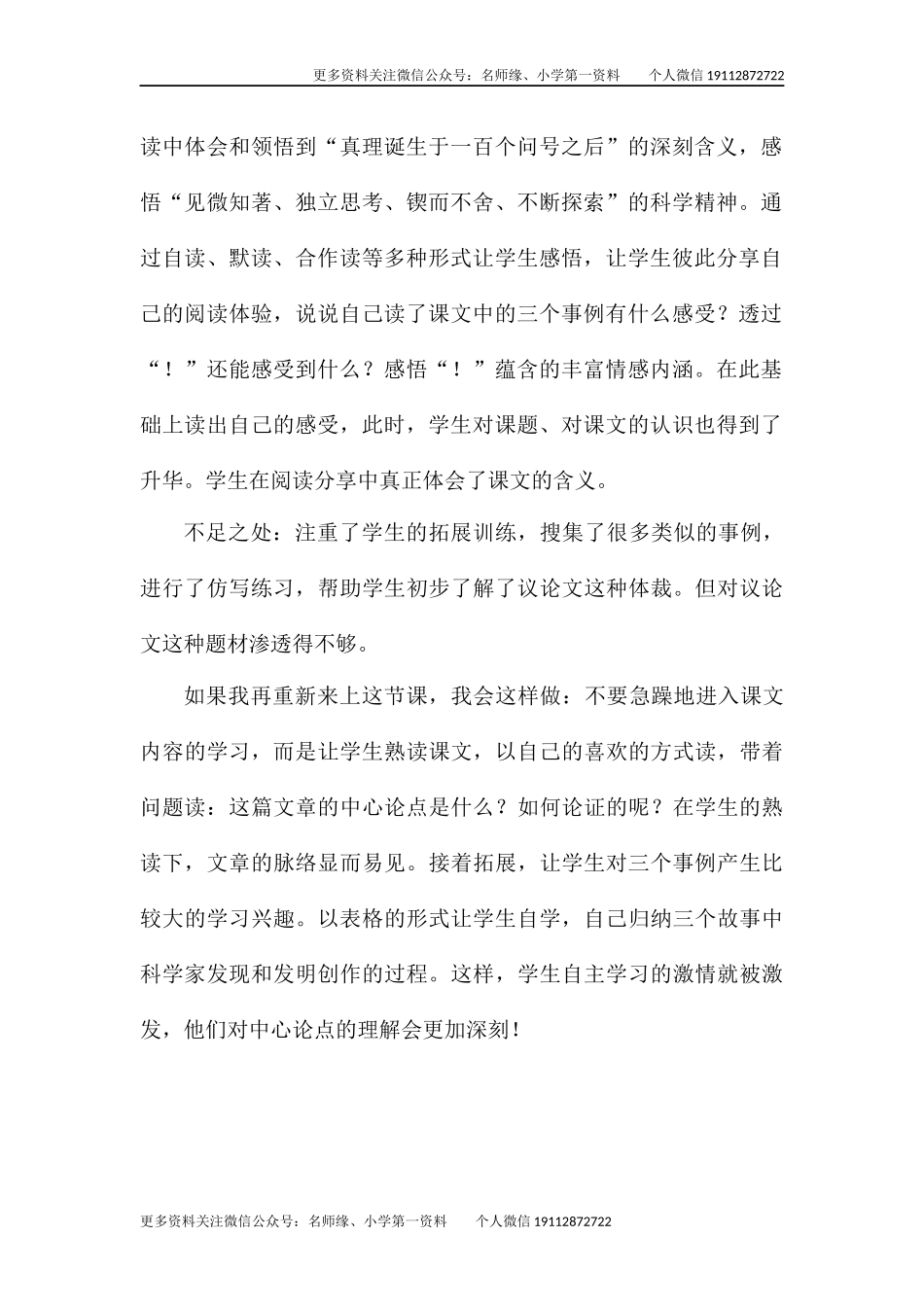 更多资料关注微信公众号:名师缘、小学第一资料个人微信19112872722《真理诞生于一百个问号之后》教学反思《真理诞生于一百个问号之后》是小学语文六年级下册第五单元中的一篇精读课文。它属于一篇议论文,课文的...
