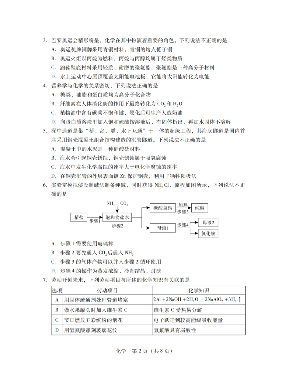 2025届广东普通高中毕业班第二次调研考试化学试卷.pdf_第3页
