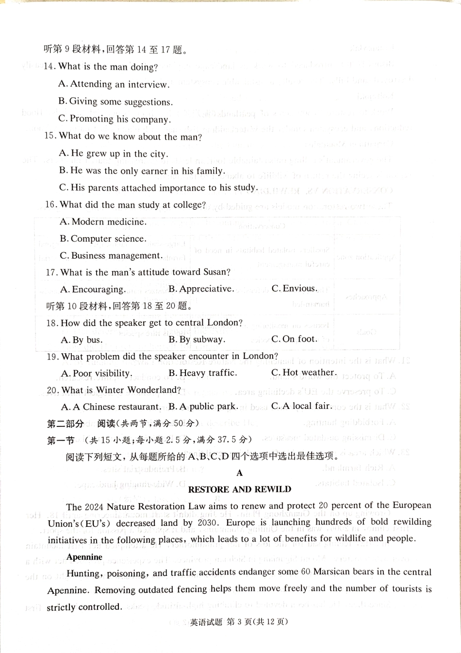 2025届湖南省九校联盟高三上学期第一次联考(一模)英语试题.pdf_第3页