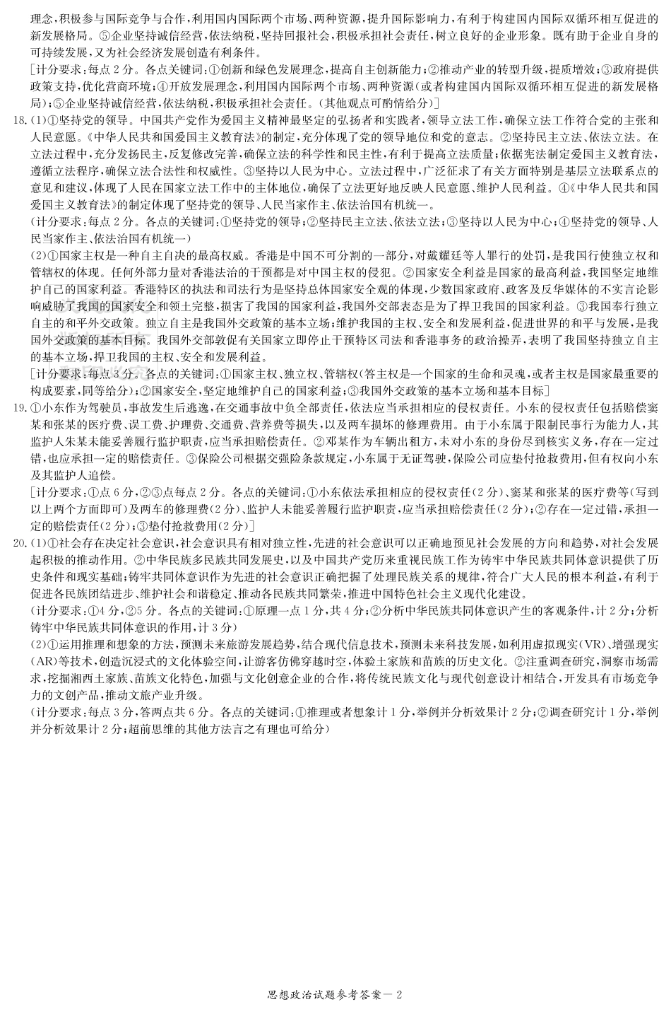 2025届湖南省九校联盟高三上学期第一次联考(一模)政治答案.pdf_第2页