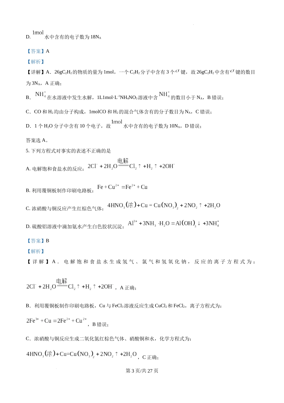 北京市通州区2025届高三上学期11月期中质量检测化学(解析版).docx_第3页