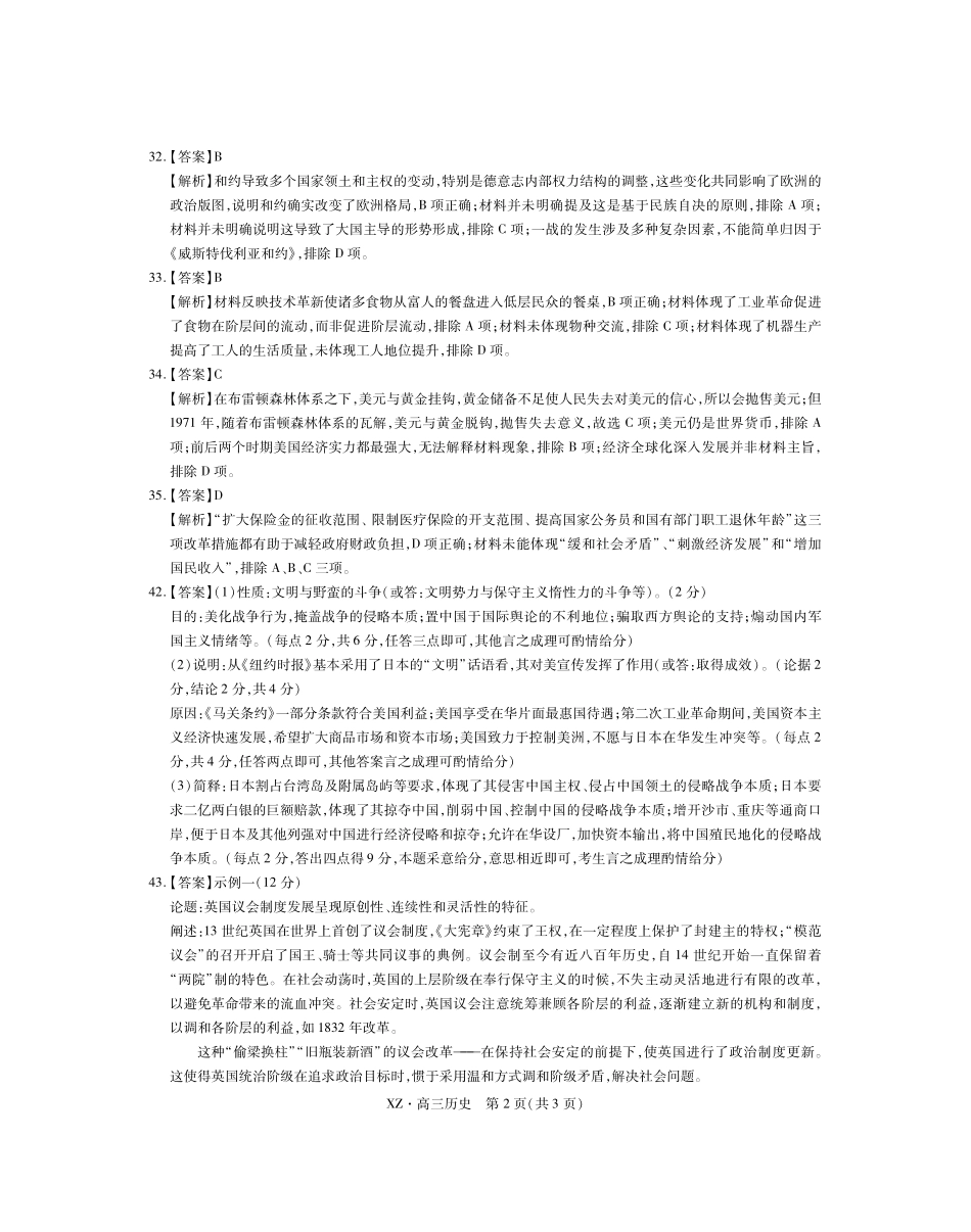 拉萨市2024-2025学年上学期第一次联考文综历史答案.pdf_第3页