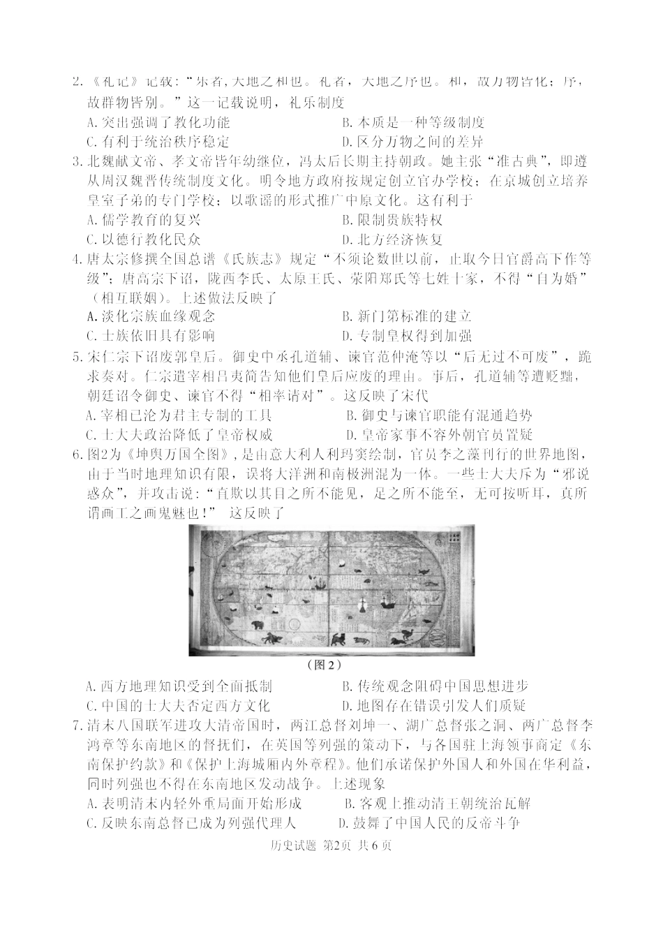 山东省实验中学2025届高三第三次诊断考试历史试题.docx_第2页