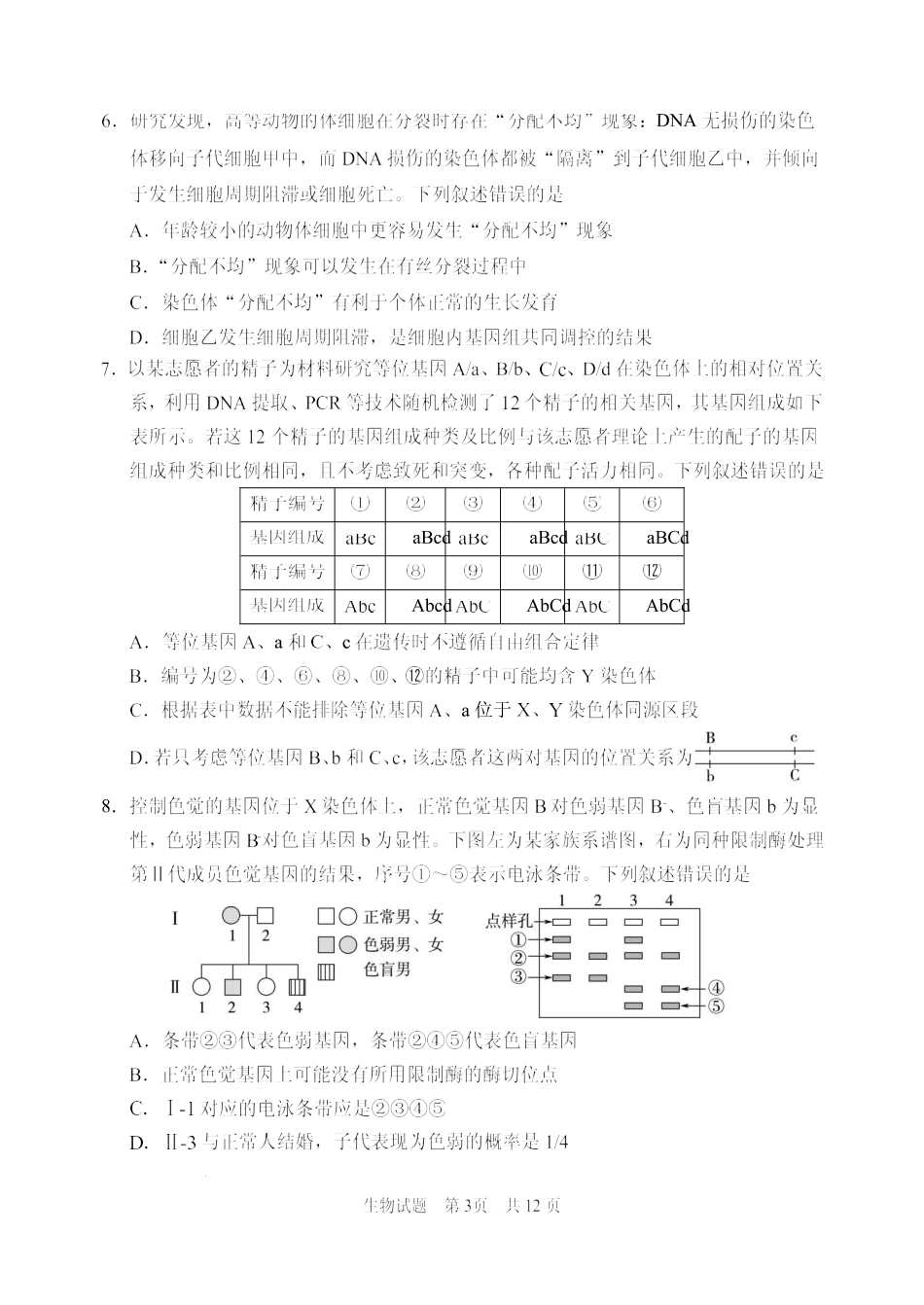 山东省实验中学2025届高三第三次诊断考试生物试题含答案.docx_第3页