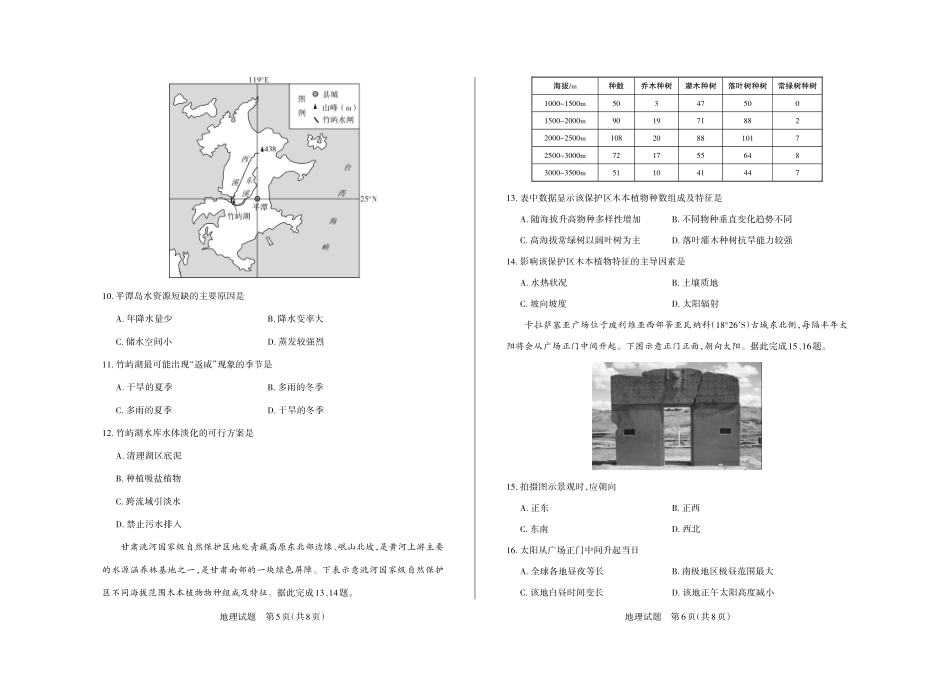 一、选择题:本大题共16小题,每小题3分,共48分。在每小题给出的四个选项中,只有一项是符合题目要求的。杜草隧道是我国某省的一条铁路隧道(下行隧道,大致从北向南延伸),隧道长度3849米,平均海拔188米,始...